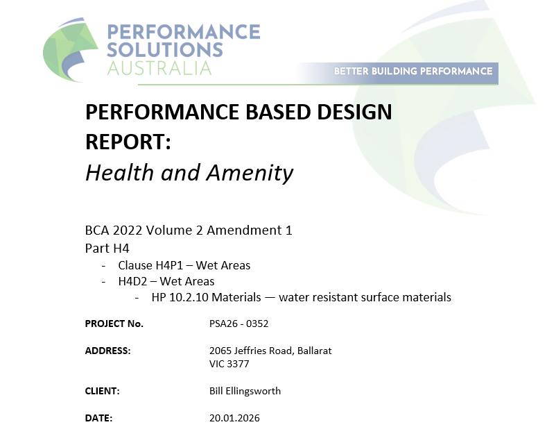 H4 is often challenged by architectural intent, boundary constraints, compact planning, complex roof forms, unusual ceiling geometry, and alternative materials/finishes. Where a design departs from the Deemed-to-Satisfy pathway, a Performance Solution may be used to demonstrate that the proposal still achieves the H4 outcomes typically using a mix of comparison, analysis, product evidence, and risk controls (ventilation strategy, condensation management measures, acoustic treatment, slip resistance evidence, etc.).